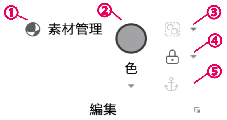 ⑤は、選択したパーツのアンカーの有効/解除が設定できるよ。アンカーを有効にすると、パーツが固定されるんだ。