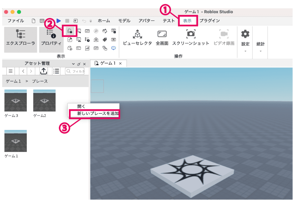 マップを追加したいゲームをロブロックススタジオで立ち上げてください。