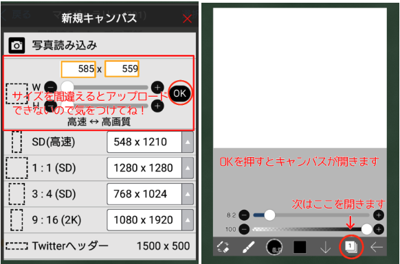 アイビスペイントでは先に画像のサイズを設定していきます。