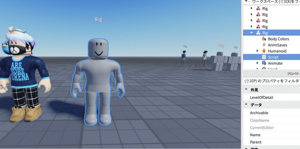 ④:好きなアニメーションのIDを設定しましょう。’507771955′ は、ダンスのIDです。Rigの下にある、Animateの中でデフォルトのアニメーションIDが確認できるよ。