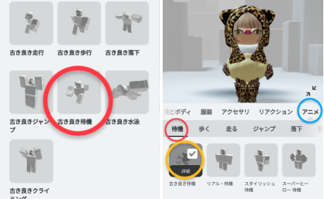 このまっすぐ立つ感じにするには「古き良きアニメーションパック」が必要になってきます。