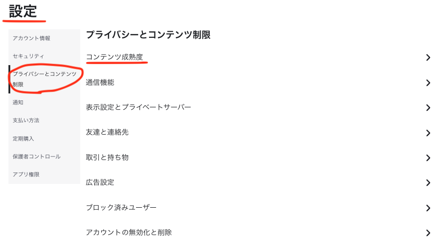 1.アカウントの年齢制限を変更する(遊ぶ人の設定)